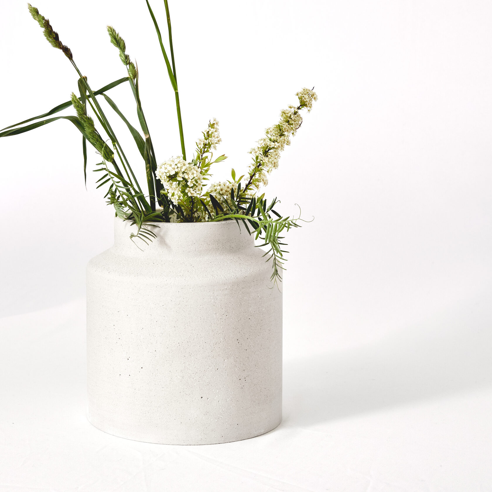 Бетонная ваза для букетов от Ominimalism — это антипод стеклянной банальности. Она тяжёлая, устойчивая и подчёркивает естественную красоту букета без лишнего шума.